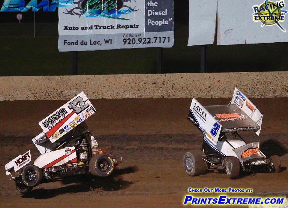 With 2 - 17B sprinters in pieces after wrecks the past 2 – weeks, the team had to find a car to use at the 141 Speedway. A call was made to the Rhine Auto #35 team, who Bill raced for once last year at Plymouth in a MSA event, and they stepped up to the plate to keep the 17B on track to stay in the hunt for a 5th straight championship. A huge thanks goes out to them, which includes Mike Urner, Craig Urner, Brett Gutschow, and Ben Schmidt for allowing this to happen. The thrash was on to get the car ready for the event, and with the hard work of both teams, the B2 Motorsports team rolled into the pit area a little after 4:00 p.m. ready to go. The track had a lot of moisture in it from overnight rain showers so it was shaping up to be a fast track. Bill would go out 6th and lay down a lap of 11.000 which would be 2nd quick. Bill would line up in the 6th starting position in the 2nd heat race. Bill gained 2 positions on the start, but would be caught up in a 4 – car wreck 3 laps in and would have to restart at the rear of the field. Bill would charge to a 2nd place finish behind Phillip Mock from the rear transferring him into the feature. Quick qualifier Mike Kertscher would pull a #2 pill which would line the 17B sprinter up in the 3rd starting position. The first start would be negated at a wreck would occur on the start. The second start would stay green as Bill would charge to the lead. Bill soon entered lap traffic and would put some cars between him and second. Traffic got thick and on lap 14 was passed by Mike Kertscher, but Bill would power back by in the next corner and set sail. A caution would come out with 3 laps to go setting up a crucial restart. There were 5 – cars between Bill and Kertscher when the caution came out, but under IRA rules the lap cars go to the back when there under 5 – laps remaining which would put Kertscher right on Bill’s bumper for the restart. On the restart, Bill knew he had to have a flawless restart. Bill would take off with Kertscher in tow. Bill went to the top of the speedway and Kertscher would attempt the slide job. Going through turn 2, Bill could see that Kertscher was going for it, but was going to be short so Bill hammered the brakes to avoid contact which made the car tight putting him in the wall, but contact was still made by Kertscher sending Bill into a series of flips ending the night 3 – laps shorts.