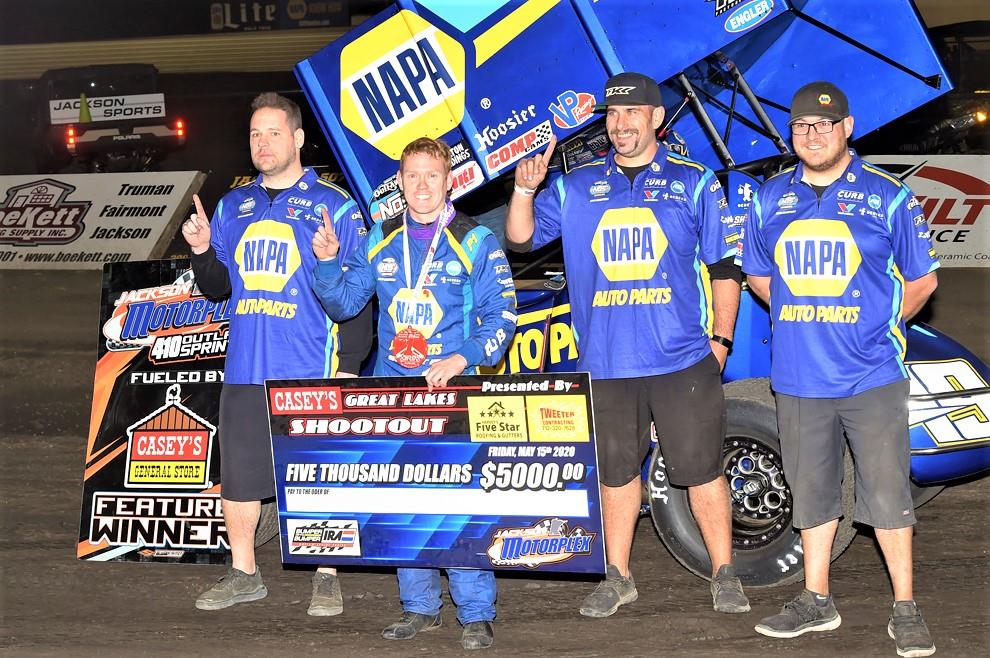 Inside Line Promotions – JACKSON, Minn. (May 15, 2020) – Brad Sweet emerged victorious on Friday evening at Jackson Motorplex, which welcomed nearly 60 of the best winged sprint car drivers in the country for the opening round of the Great Lakes Shootout presented by Tweeter Contracting and Harvey’s Five Star Roofing.